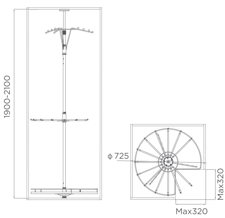 Khung treo quần áo góc tủ, xoay 360 độ |