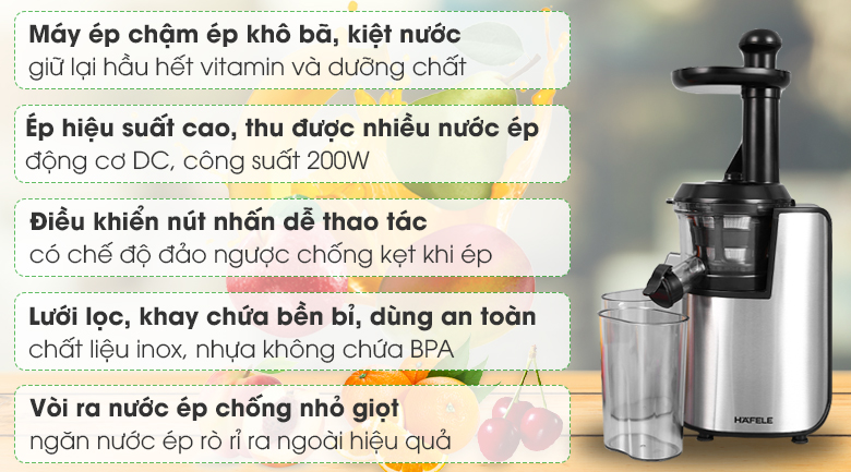 1. Tên hàng: Máy ép chậm trái cây, rau củ GS-133N HAFELE 535.43.811