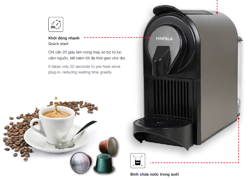 1. Tên hàng: Máy pha cà phê dạng viên nén Hafele HS-C31S 535.43.021