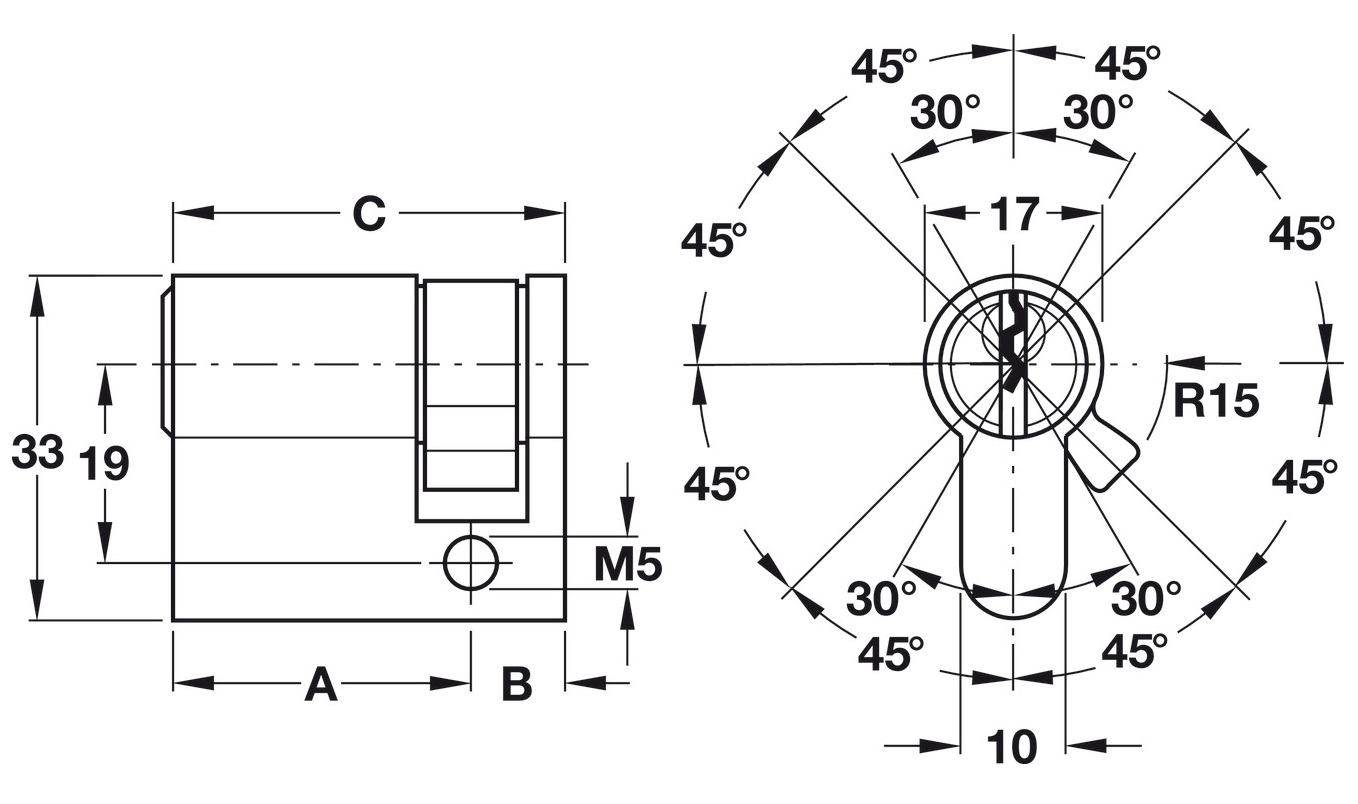 * Thông số kỹ thuật ruột khoá Hafele inox 1 phần 2 đầu chìa 35-45mm 916.96.117: