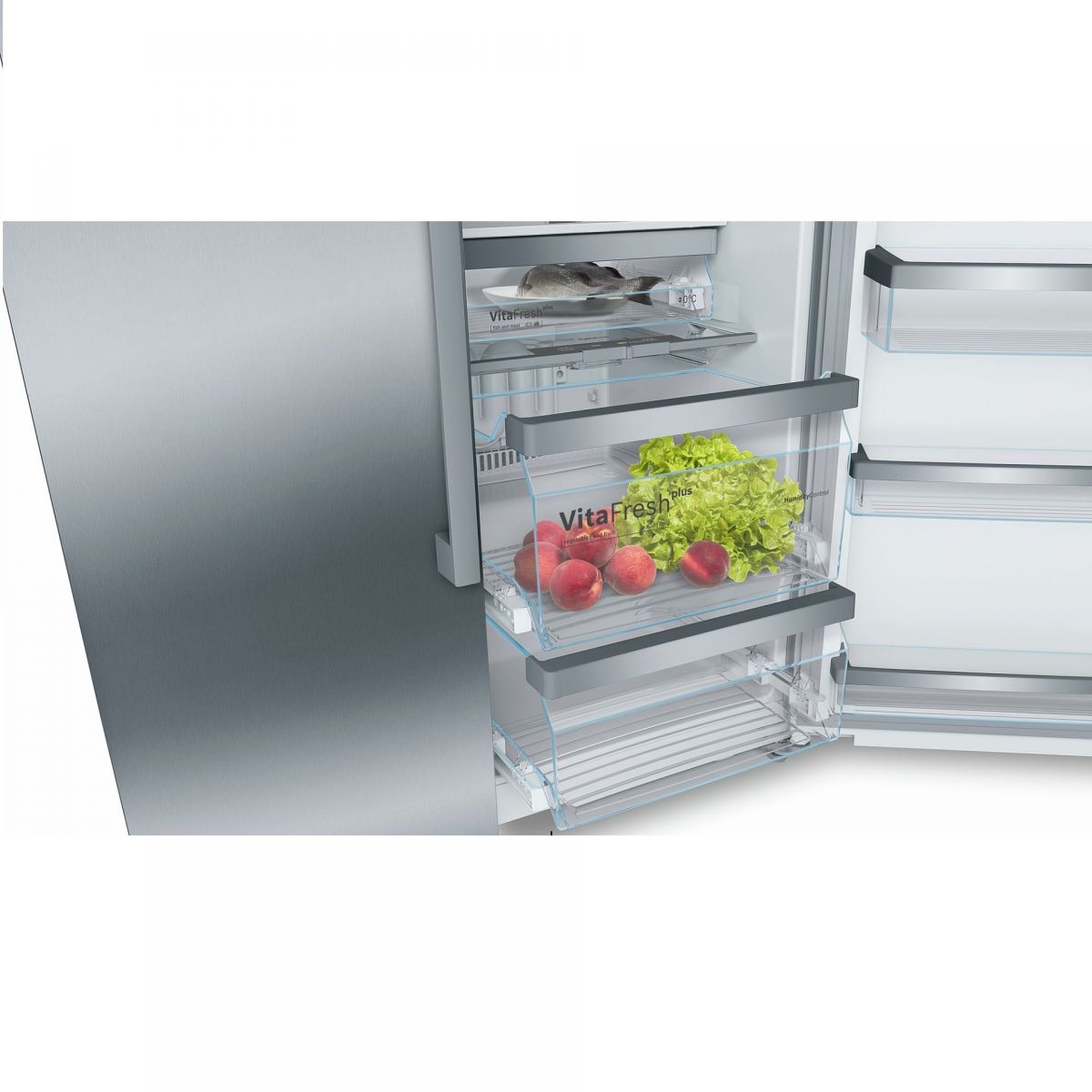 - Ngăn kéo MultiBox: Ngăn kéo MultiBox trong tủ lạnh Bosch KAD92HI31 được thiết kế đáy ngăn kéo có các lớp lượn sóng giữ sự tươi mát cho rau và trái cây lâu hơn so với ngăn kéo tiêu chuẩn.