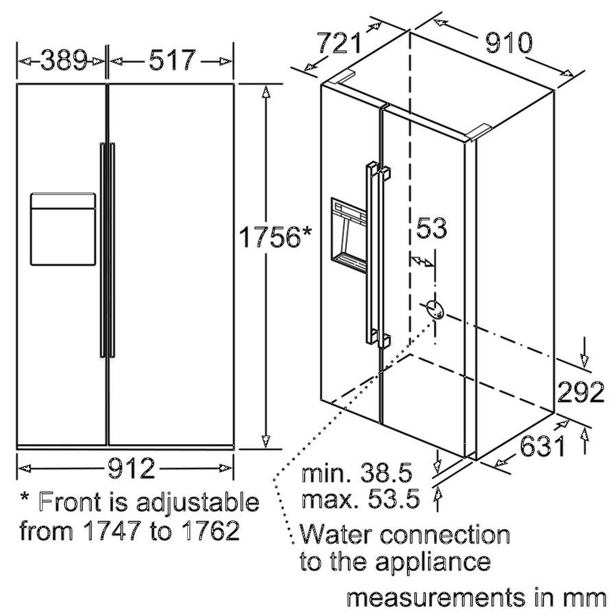 Thông số kỹ thuật tủ lạnh side by side Bosch KAD92HI31 Series 8